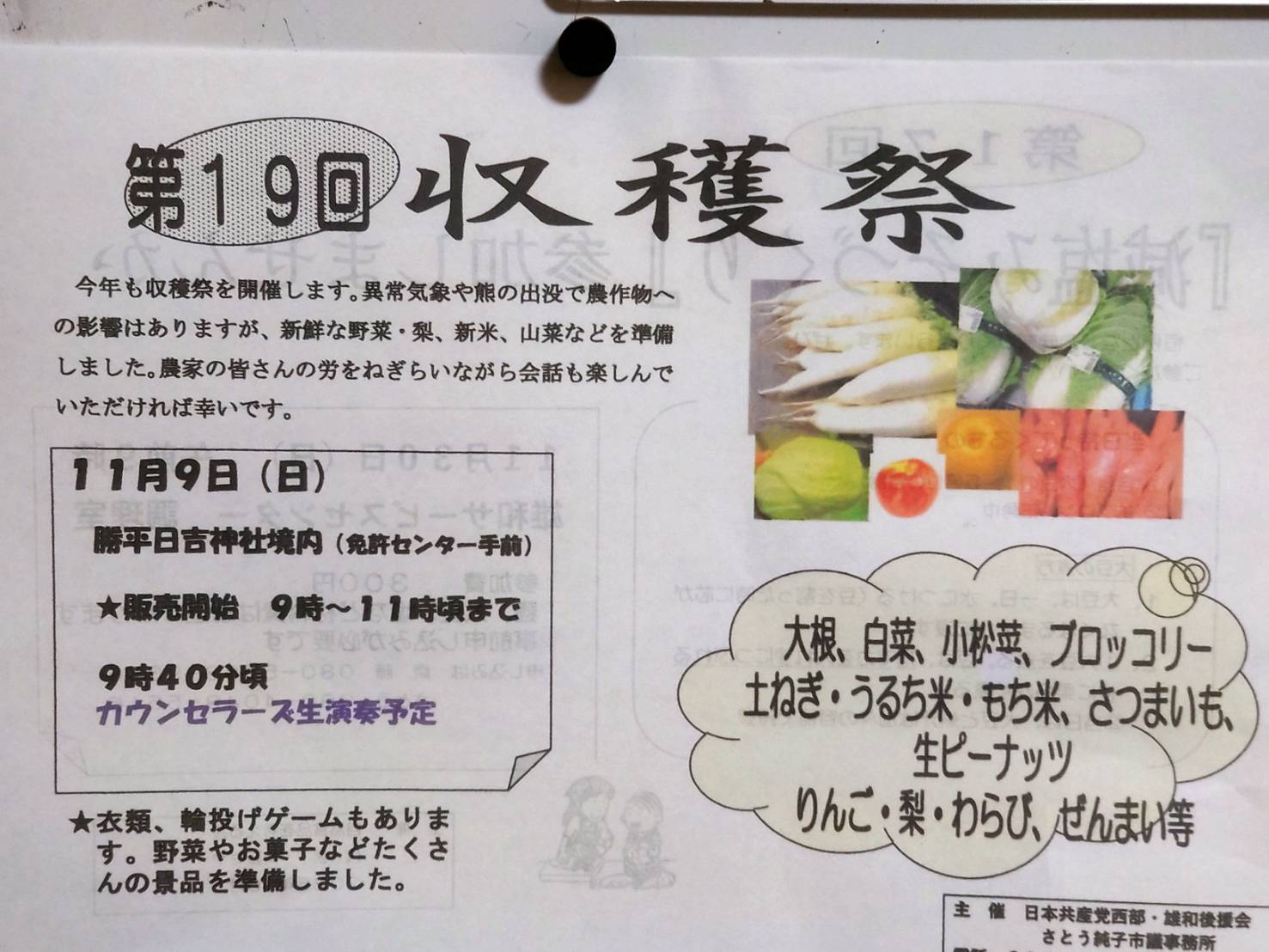 ◆令和7年11月9日(日)9時頃~勝平日吉神社収穫祭にてライブを行います。