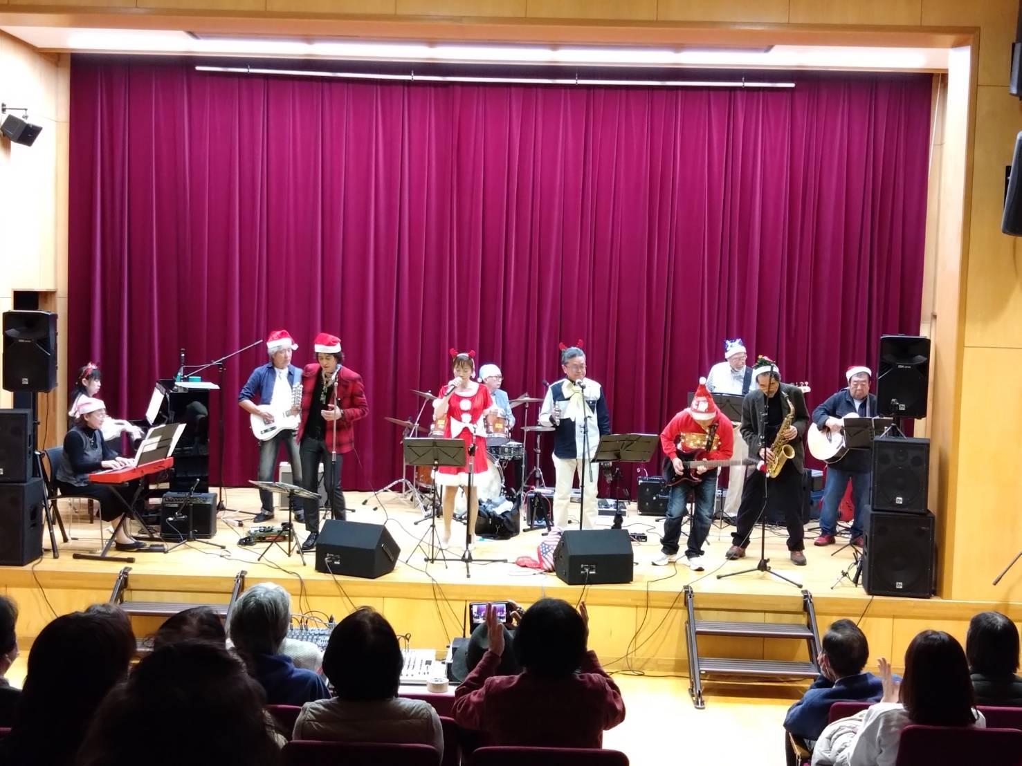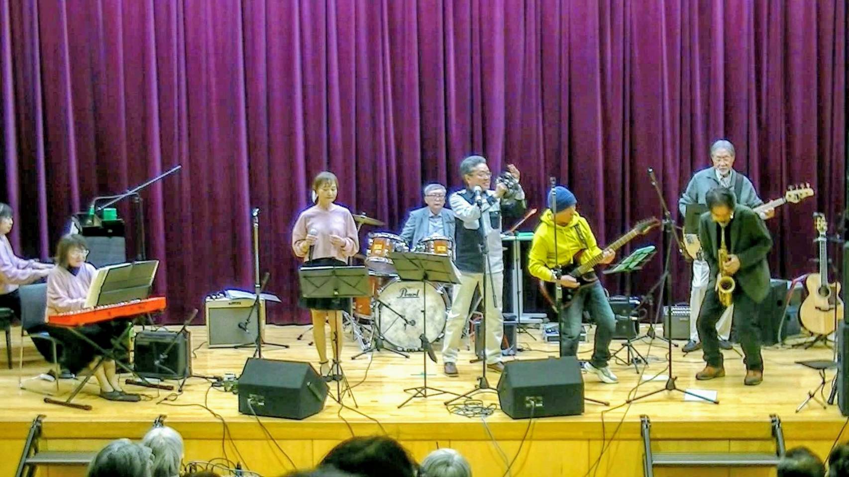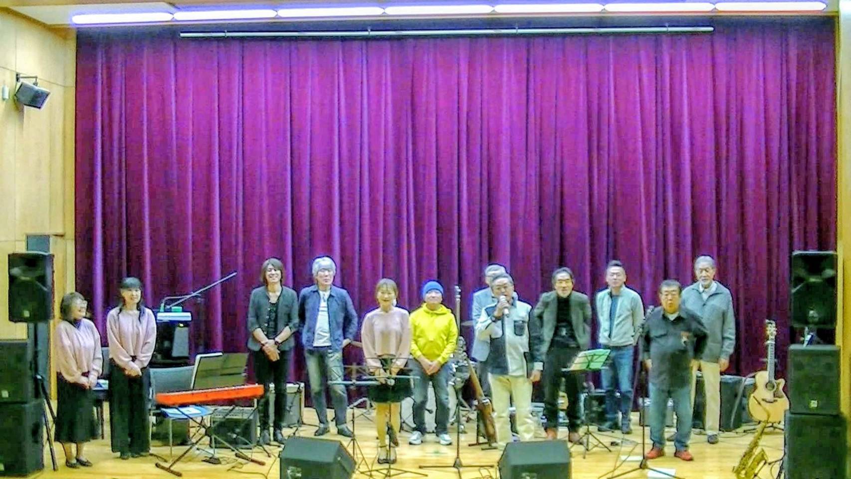 なんぴあで行われたミル・クオーレとザ・カウンセラーズとのジョイントコンサートは、無事終了しました✨ 当日は、会場の150席はほぼ埋め尽くされ、大勢のみなさまに楽しんでいただきました。 違うスタイルのバンドとのジョイントコンサートは、演奏する側にとって企画・運営から本番まで大変な作業でしたが、いざ本番ともなれば、お客様にも演奏する側にとっても、楽しいひと時でした。最後に2つのバンド合同で、クリスマスソングを演奏しました。